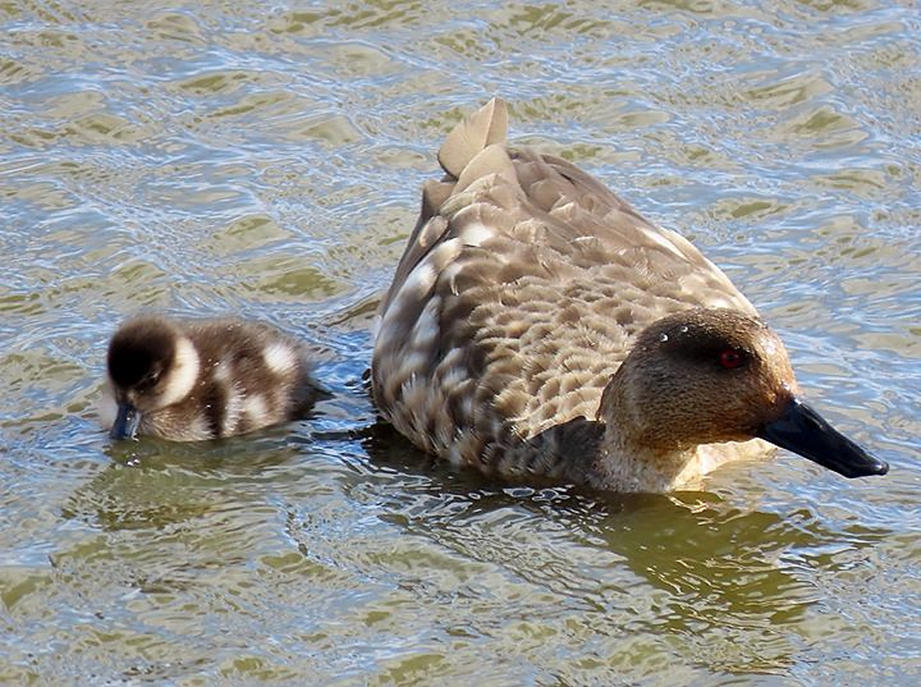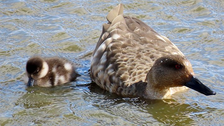 Una madre y un polluelo en el Humedal Tres Puentes.