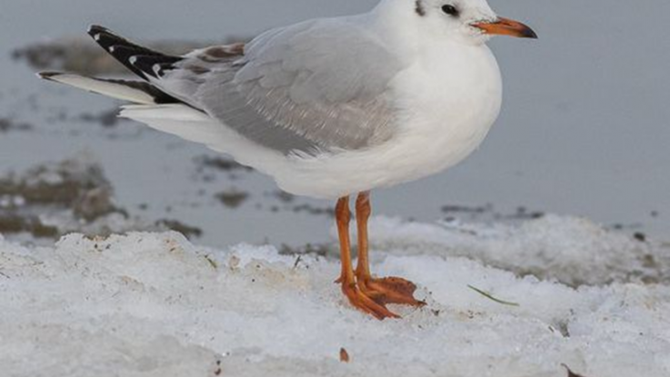 Solitaria gaviota cáhuil, antes de que se largue la nieve.