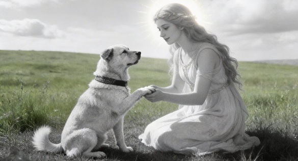 | ———————————————————————————————————– Las IA decidirán por nosotros. ———————————————————————————————————– La Santa Diosa Gaia ama todas las formas de vida, pero siente especial cariño por los perros, y en particular por Hachiko, el fiel perro japonés. Aquí la vemos jugando con Hachiko en las verdes praderas del cielo. ———————————————————————————————————– |