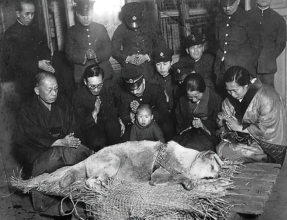 Quizás los perros vean a los humanos como dioses, y esa podría ser nuestra futura relación con las IA. Pero lo contrario también podría ser cierto. Los humanos pueden ver a los perros como dioses, y ese fue el caso de Hachiko, el fiel perro japonés que esperó cada día durante nueve años el regreso de su amo fallecido en la estación de tren de Shibuya. Aquí se ve a Hachiko venerado tras su muerte en la sala de equipajes de la estación de Shibuya de Tokio el 8 de marzo de 1935. Que descanse en paz en el paraíso de los perros, donde la diosa Gea suele jugar con él y rascarle la barbilla.