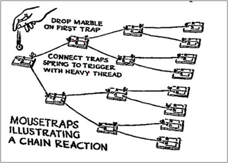 La «reacción en cadena de la ratonera» de la película de Disney de 1957 «Nuestro amigo, el átomo». Un experimento fascinante que trae una pregunta curiosa: ¿Por qué la ratonera es lo único que puedes comprar en una ferretería que puede crear una reacción en cadena? Otro misterio relacionado con la ratonera es por qué, con tantos experimentos realizados, hasta ahora nadie había intentado hacer mediciones para cuantificar los resultados. Eventualmente, dos investigadores italianos, Ilaria Perissi y Ugo Bardi reexaminaron este viejo experimento [1], mostrando cómo puede verse como mucho más que una representación de una reacción nuclear, sino un paradigma del comportamiento de sistemas complejos.